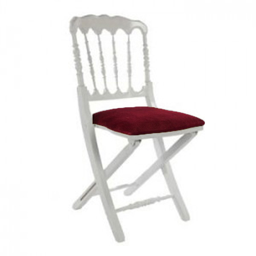 La chaise Napoléon pliante est un grand classique des réceptions. En bois, c’est une chaise confortable grâce à son dossier haut à barreaux et son assise rembourrée blanche ou rouge.